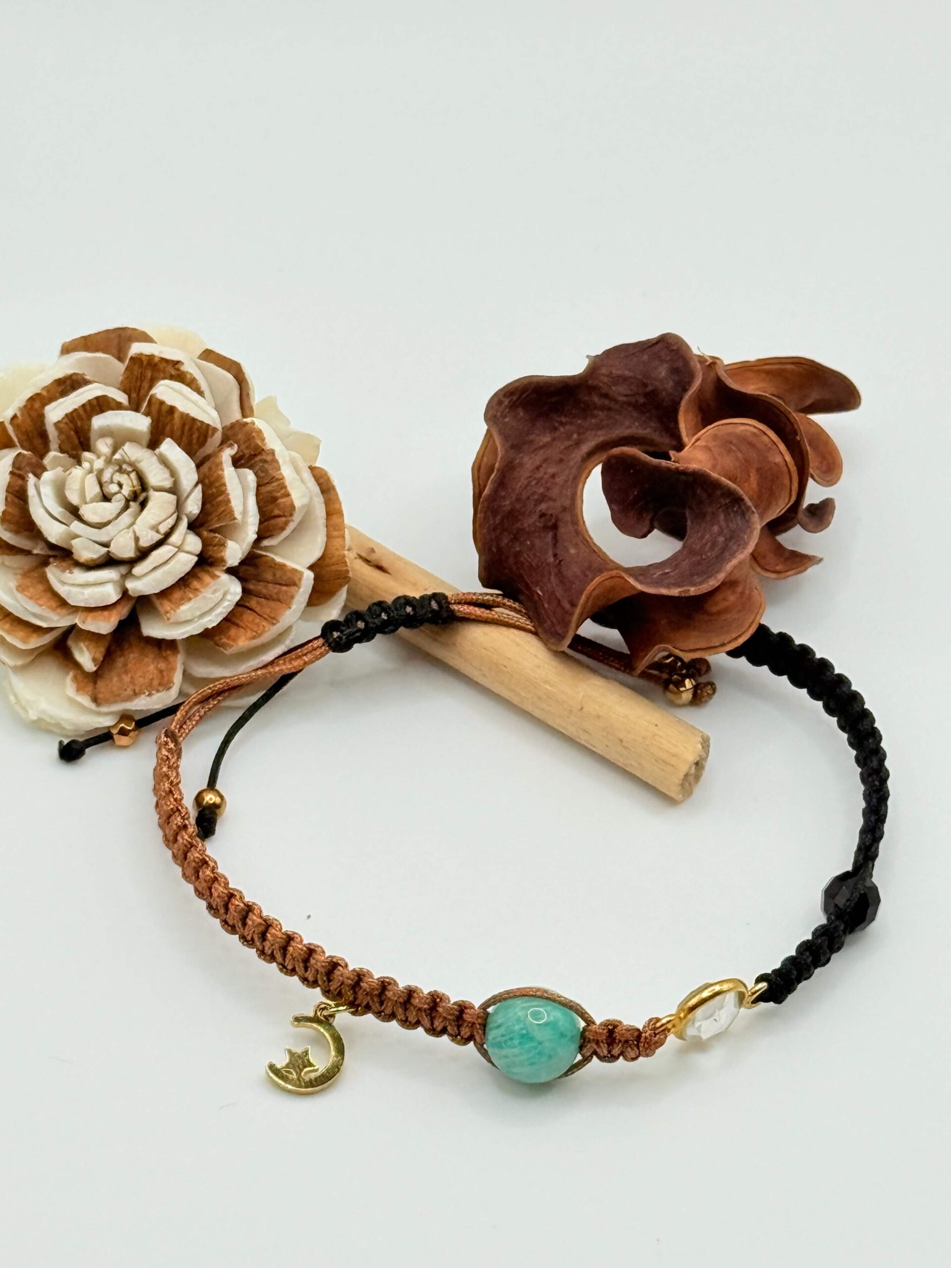 Bransoletka pleciona z kamieniami naturalnymi oraz zawieszką.